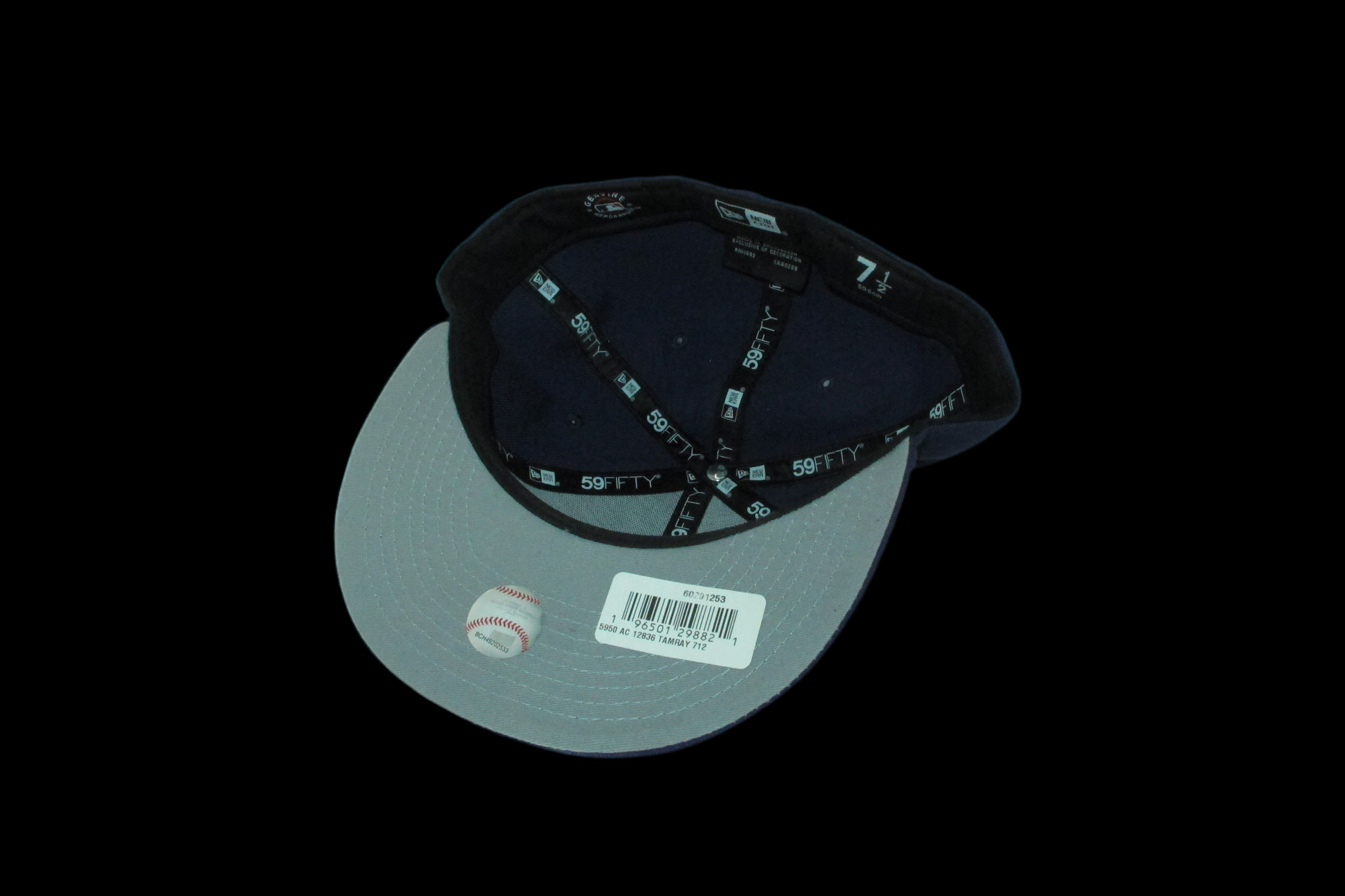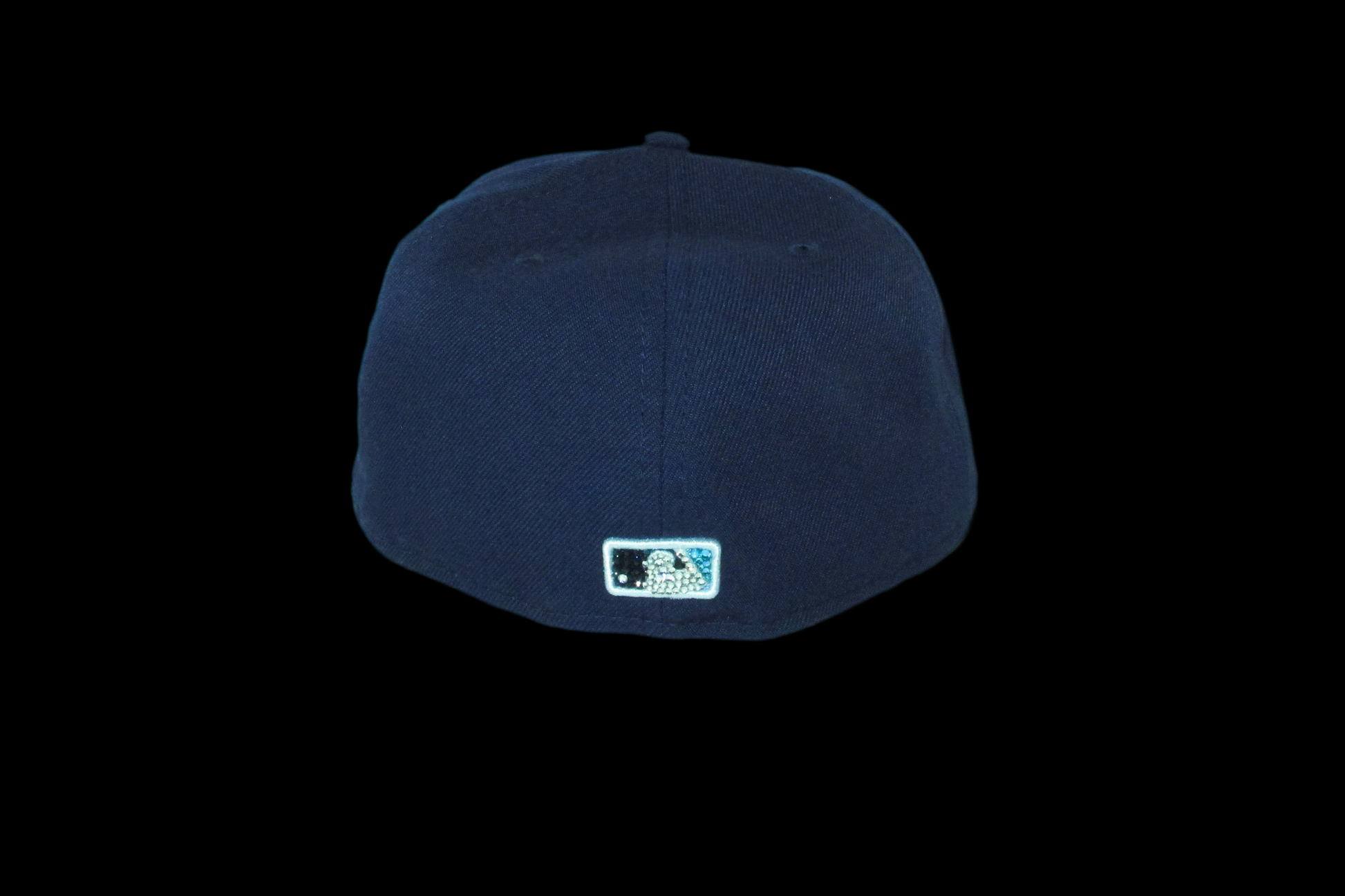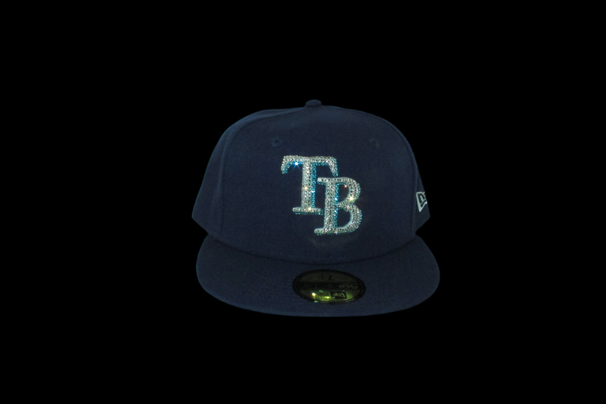 An iced out Tampa Bay fitted cap. It comes with an iced out batterman, New Era logo and a iced out Tampa Bay front logo. It comes in the navy colorway with a grey underbrim.